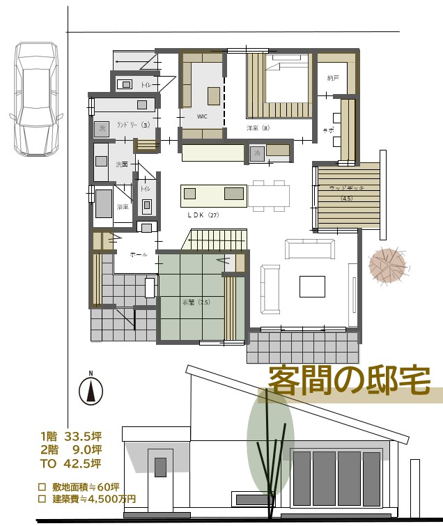 42坪の堂々たる邸宅は、玄関ホールから直に入れるゲストルームがあります。