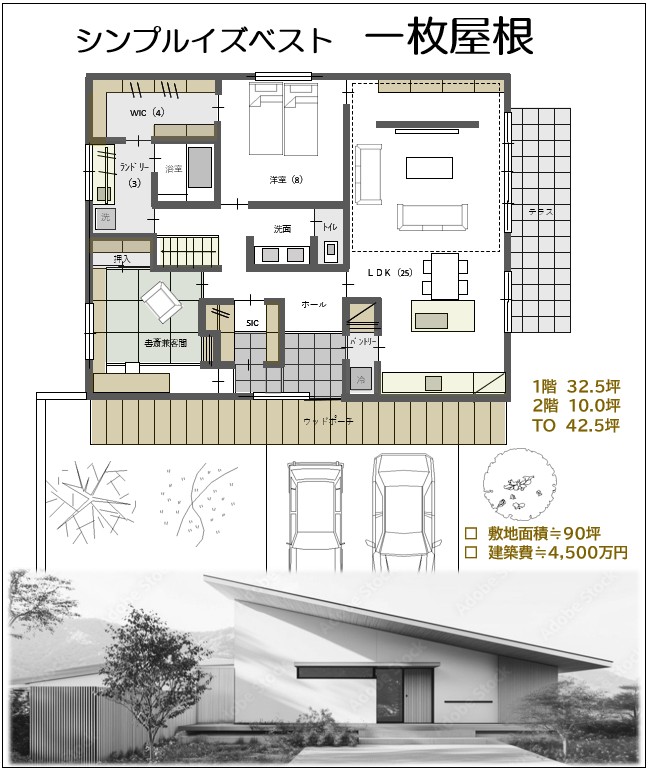 二人で暮らす世帯が増えています。新婚~シニア夫婦まで、セレブに暮らせる二人の平屋のご提案です。